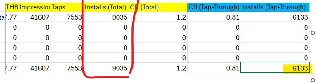 - Looker Studio / export: Installs (Tap-Through) = 6,133