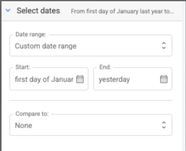 For the queries, would it possible to create a new data range "Last year & this year to YESTERDAY"? As far as I know the closest one we have is "Last year & this year to date" (see the screenshot)